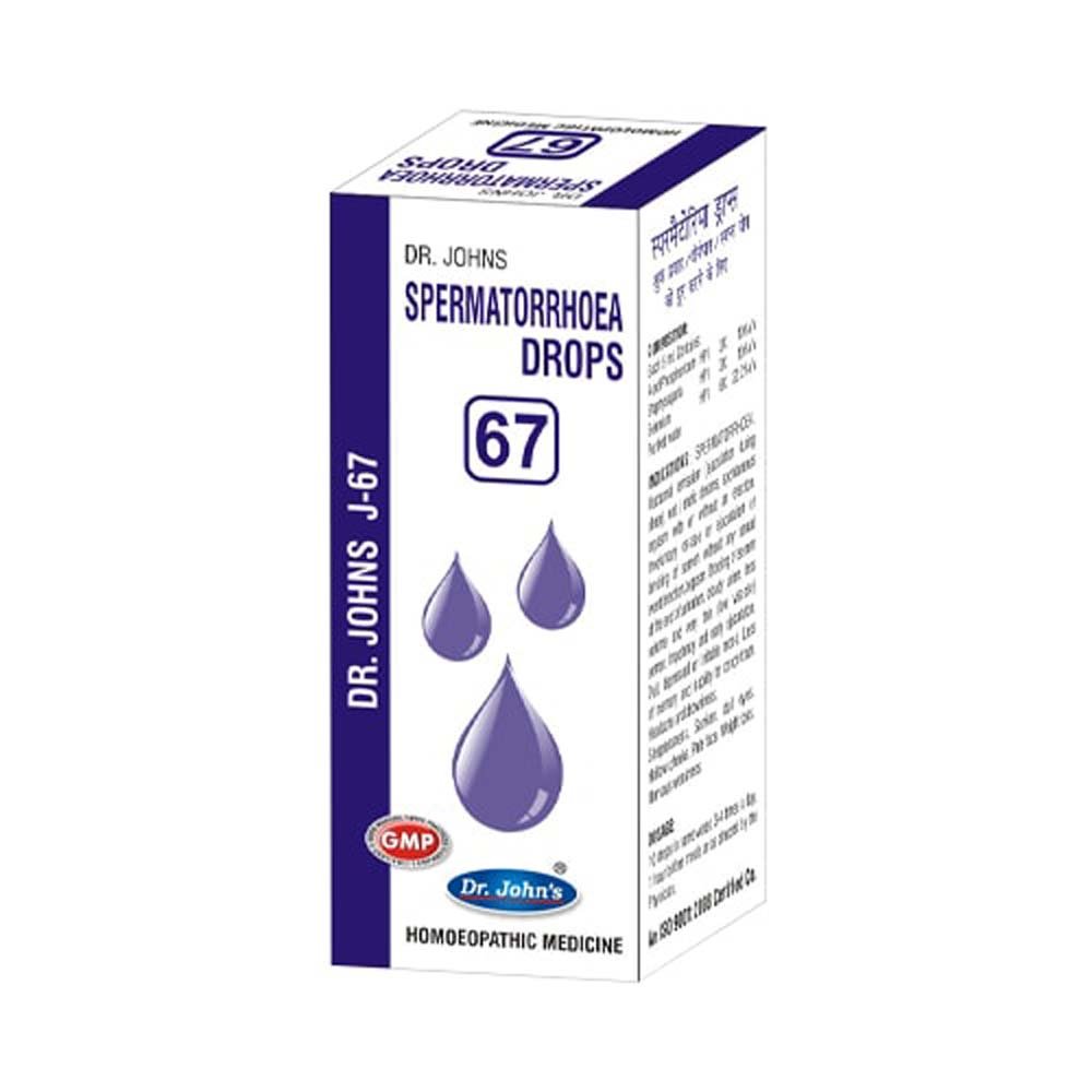 Dr. Johns J-67 Spermatorrhoea Drop is a homeopathic preparation given in the form of drops. These drops are indicated for the treatment and management of Spermatorrhoea which is accompanied by nocturnal emissions .